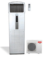 Room air conditioners come in two forms: unitary and packaged terminal PTAC systems. Unitary systems, the common one room air conditioners, sit in a window or wall opening, with interior controls. Interior air is cooled as a fan blows it over the evaporator. On the exterior the air is heated as a second fan blows it over the condenser. In this process, heat is drawn from the room and discharged to the environment. A large house or building may have several such units, permitting each room be cooled separately. PTAC systems are also known as wall split air conditioning systems or ductless systems. These PTAC systems which are frequently used in hotels have two separate units (terminal packages), the evaporative unit on the interior and the condensing unit on the exterior, with tubing passing through the wall and connecting them.